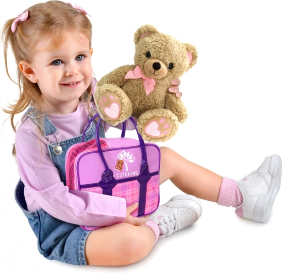 Maak je klaar voor uren zacht knuffelen en fantasierijk spelen. Deze pluchen teddybeer met CUTEKINS-handtas combineert een schattige look met een praktische uitvoering – de beer kan veilig in de tas worden opgeborgen en overal mee naartoe. Het superzachte materiaal, de fijne details met strikje en hartjes en het lichte ontwerp maken het een geweldige keuze voor kinderen vanaf 2 jaar.