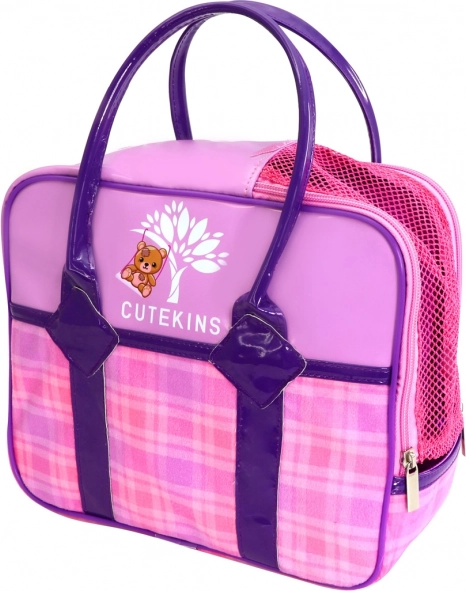 De handtas met roze‑paars ruitpatroon en rits is ideaal om de knuffel en kleine schatten te vervoeren. Dankzij de stevige hengsels ligt hij prettig in de hand. De CUTEKINS-stijl valt op door de kleuren en het speelse beertjesmotief, en zorgt elke keer voor plezier tijdens het dragen.