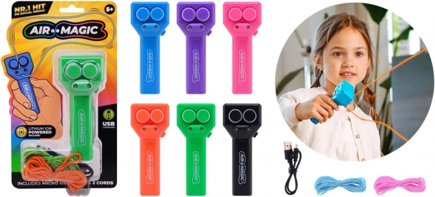 Ontdek het plezier met Air Magic – het slimme speelgoed dat lijkt te tarten met de zwaartekracht. Zet het aan, laat het draaien en kijk hoe het koord en de rotor door de lucht bewegen. Oefen trucs, speel buiten en binnen en geniet van een lange gebruiksduur dankzij de oplaadbare lithium-ionbatterij met opladen via micro‑USB. Verkrijgbaar in 6 kleuren.
