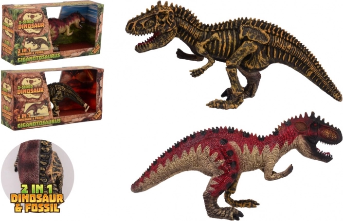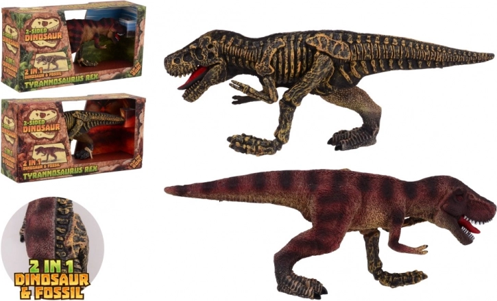Eén zijde een realistische dinosaurus, de andere een gedetailleerd skelet – ideaal voor spel en leren.