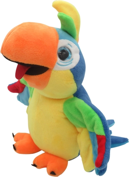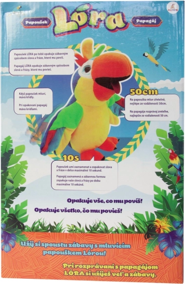 Breng veel plezier en fantasie in de kinderkamer met de pratende pluchen papegaai Lóra. Het speeltje herhaalt elke zin op een grappige manier en wappert met zijn vleugels tijdens het herhalen, waardoor de interactie nog leuker wordt.