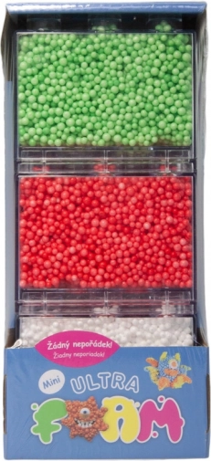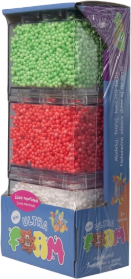 De mini verpakking van Ultra Foam bevat drie kleuren: groen, rood en wit, die je kunt combineren om verschillende vormen te maken.