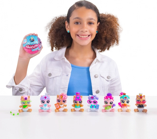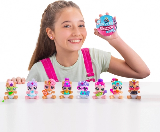Ontdek 5 Surprise Miminka Unicorn Squad van het merk Zuru, dat je meeneemt naar een magische wereld van verzamelbare figuren. Binnenin elke bal wachten vijf verrassingen, ideaal voor meisjes en jongens die graag mysteries ontrafelen en nieuwe speelgoedjes ontdekken: