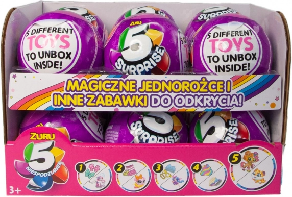 Duik in de mysterieuze wereld van 5 Surprise Serie 2. Deze ballen zijn de ideale keuze voor kinderen die dol zijn op verrassingen en het ontdekken van nieuwe speeltjes. Elke bal bevat vijf afzonderlijke compartimenten die je eenvoudig kunt openen om echte schatten te vinden, van figuurtjes tot accessoires. Het speeltje is verpakt in ondoorzichtige folie, wat de spanning en nieuwsgierigheid tijdens het uitpakken vergroot.