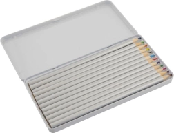Praktische set van 12 kleurpotloden in een metalen blik van GRAFIX, ideaal voor schoolkinderen en jonge kunstenaars. Biedt heldere kleuren, een zachte en duurzame kern en een compact metalen blik, ideaal voor school en onderweg. Dikte van de kern ca. 0,2 cm, potloodlengte 17,5 cm.