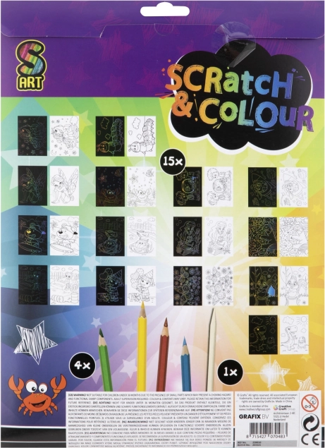 Deze veelzijdige creatieve set biedt kinderen uren speelplezier. Elk van de 15 vellen in A5-formaat biedt aan de ene kant magisch krassen van afbeeldingen en aan de andere kant kleurplaten. Inclusief alle nodige hulpmiddelen, zodat je meteen aan de slag kunt.