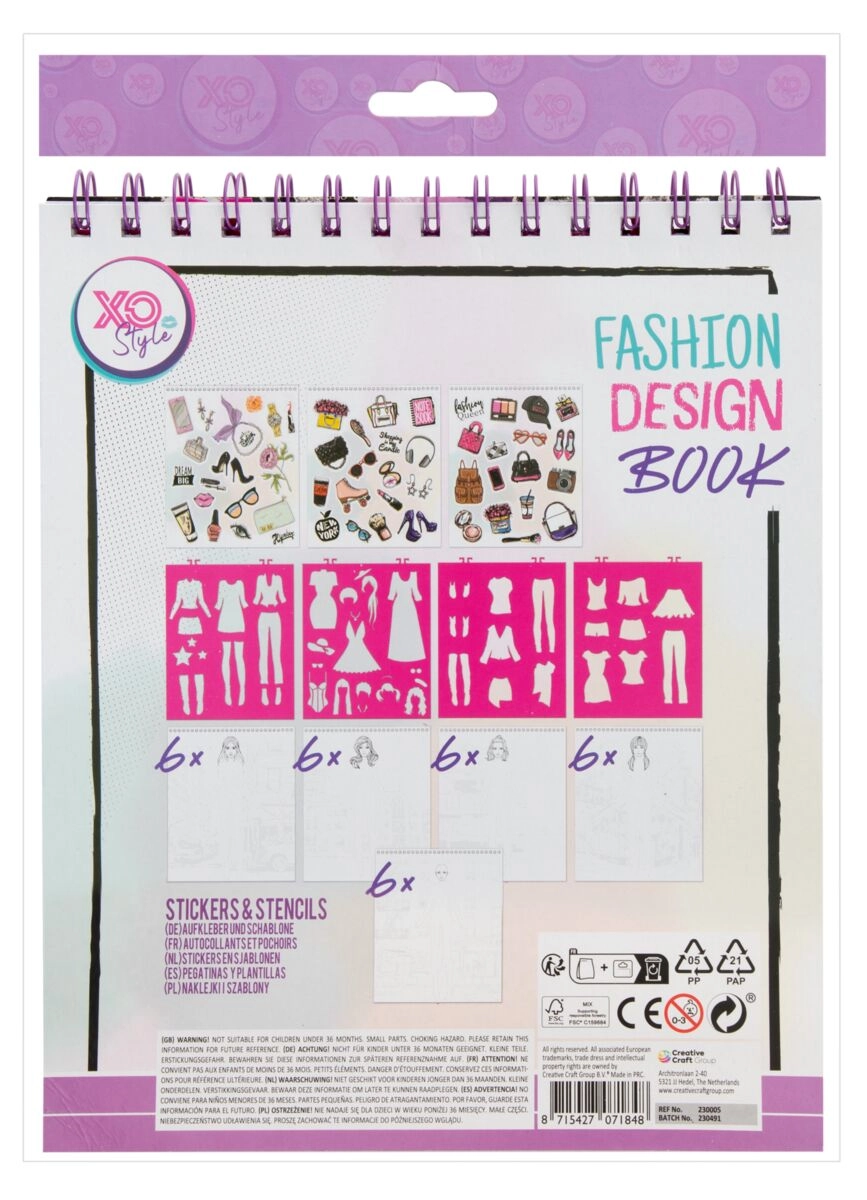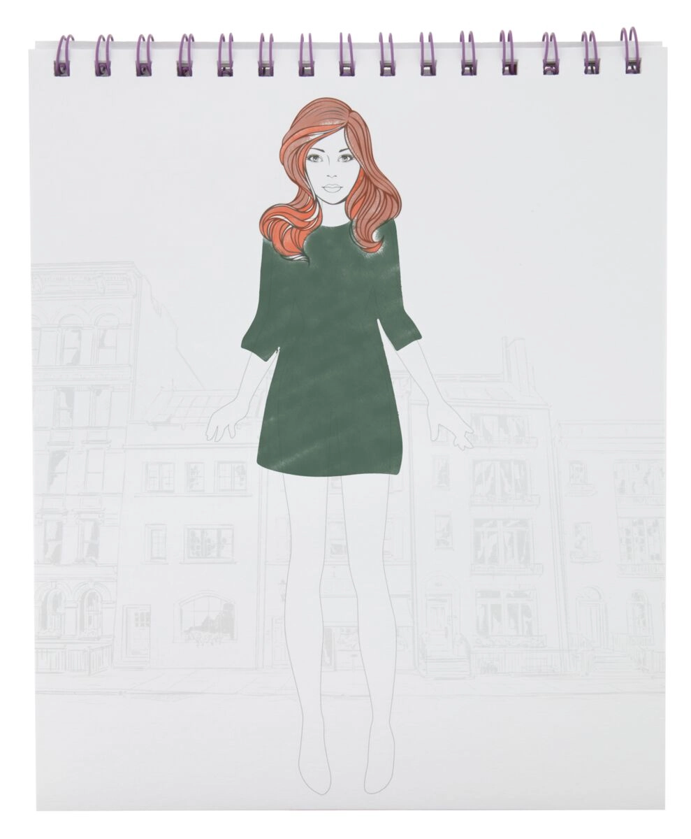 Dit stijlvolle schetsboek met stevige ringband is ideaal voor alle kleine en grotere modeliefhebbers. Dankzij de voorgedrukte silhouetten, sjablonen en stickers kun je snel originele ontwerpen maken, kleuren combineren en experimenteren met accessoires.