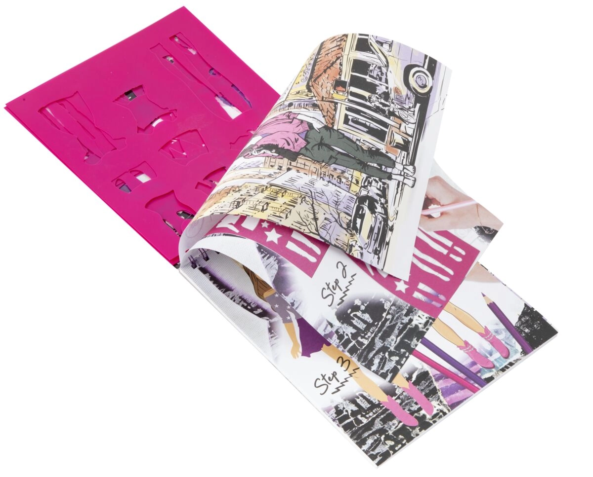 De set bevat 36 vellen met figuurvoorbeelden, 5 kunststof sjablonen met kleding- en accessoire-elementen en een ruime set stickers voor de definitieve versiering. Het praktische formaat is geschikt voor op reis en naar school, de pagina’s slaan makkelijk om en dankzij de sjablonen werk je intuïtief.