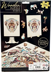 Geniet van plezier en uitdaging tijdens het leggen van de contourpuzzel met een apenmotief. Elk stukje heeft een unieke vorm, sommige lijken zelfs op dieren en voorwerpen.