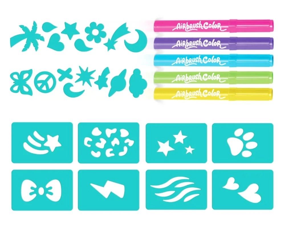 Breid de creatieve mogelijkheden van je airbrush-set uit met navullingen in een levendig kleurenpalet en praktische sjablonen. Eenvoudig gebruik stimuleert de verbeelding en fijne motoriek van kinderen, terwijl de veilige samenstelling en gemakkelijke applicatie zorgeloos knutselen garanderen.