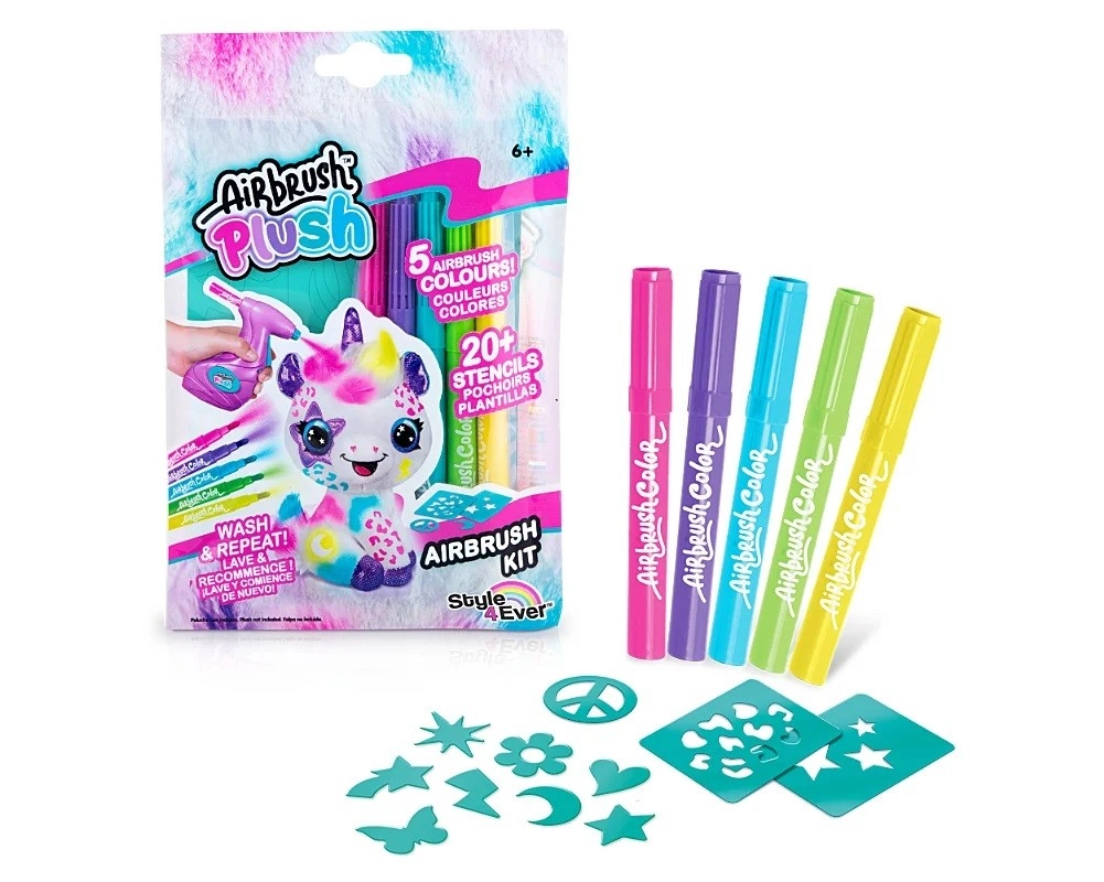 Vul je creatieve set aan met praktische vervangende navullingen voor de airbrush. De verpakking bevat 5 opvallende kleuren en 20 sjablonen voor eenvoudig en leuk creatief werk. Ideaal voor kinderen vanaf 6 jaar die graag tekenen en nieuwe technieken ontdekken.