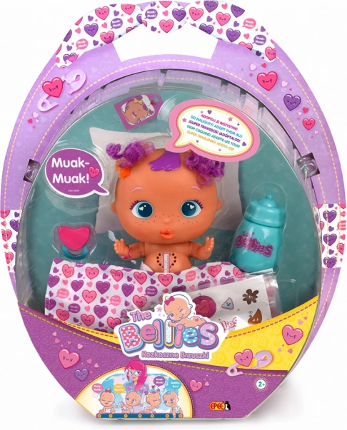 Ontdek de wereld van schattige Bellies-baby's die een nieuw thuis zoeken. Met hun unieke eigenschappen worden ze gemakkelijk de beste vriend van elk kind. Elke baby heeft zijn eigen persoonlijkheid en een uniek versierd moedervlekje, wat elke pop een origineel uiterlijk geeft.