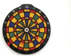 In de verpakking vind je een dartbord en 6 kunststof pijlen, zodat je direct kunt beginnen met spelen – thuis, op kantoor of in het vakantiehuis.