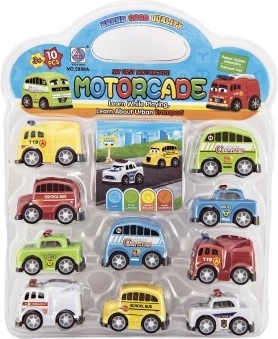 Deze kleurrijke set mini-autootjes brengt kinderen volop actie en verhalen. In de verpakking vind je verschillende typen voertuigen – van bus en politie tot hulpdiensten en brandweer – die uitnodigen tot spannend spel in de stad, op de weg en bij reddingsmissies.