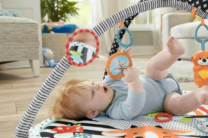 Het 3-in-1 speelkleed met otter ondersteunt de eerste vaardigheden van je baby dankzij de combinatie van licht, muziek, contrasterende patronen en texturen. Twee zachte boogstangen dragen een spiegeltje, rammelaars en een BPA-vrije bijtring, terwijl de schattige otter met licht en geluid tot 15 minuten melodieën afspeelt en zacht licht geeft voor rustgevend spel.