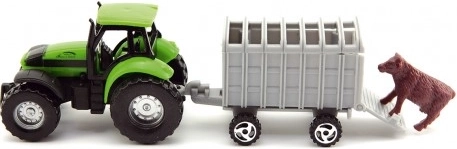 Breid je verzameling landbouwtechniek uit met dit plastic model van een tractor met aanhangwagen. Geschikt vanaf 3 jaar.