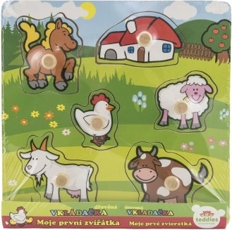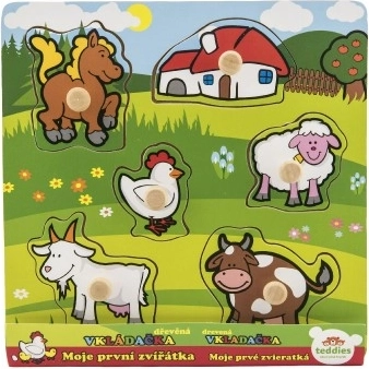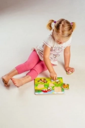 Deze puzzel bevat in totaal 5 kleurrijke dieren, waaronder een pony, geit, schaap, kip en koe, die dankzij kleine houten handvatten gemakkelijk vast te pakken zijn. Elk van de stukjes heeft een eigen plek op de houten basis, wat kinderen helpt om elk stukje op de juiste manier te plaatsen.