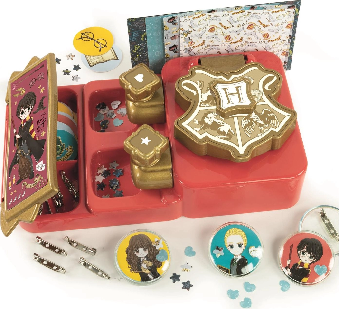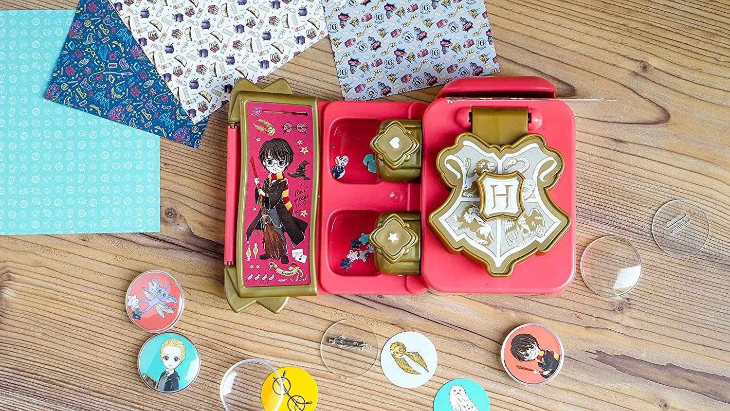 Maak kennis met de Harry Potter badge-maker: Breng de magie van Harry Potter in je leven met dit creatieve hulpmiddel! Deze speciale machine maakt het eenvoudig om badges te maken die je kunt bevestigen op shirts, jassen, etuis, rugzakken en andere persoonlijke items.