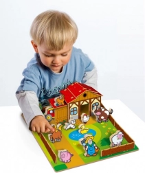 Deze houten boerderij is ideaal voor jonge kinderen vanaf 3 jaar. De boerderij kan eenvoudig worden opgebouwd op een houten basis van 31 x 31 cm, wat een perfecte speelhuisje vol dieren creëert. Het bestaat uit 28 onderdelen, die eindeloze mogelijkheden bieden voor fantasierijk spel.