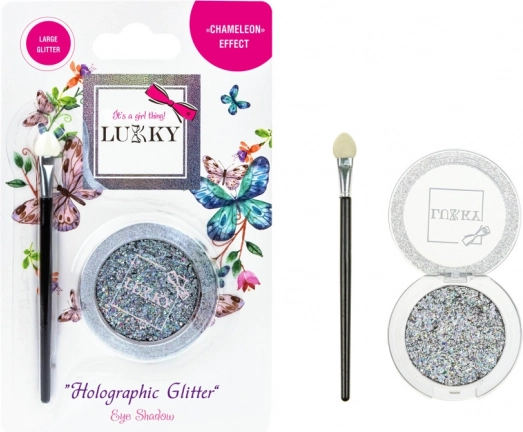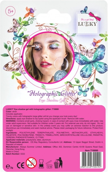 Ontdek de wereld van schoonheid met de gel oogschaduw van Lukky, die uw ogen stralend laat oplichten dankzij holografische glitters en eenvoudig aan te brengen is met het praktische kwastje. Geschikt voor kleine prinsesjes vanaf 3 jaar.