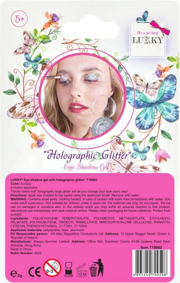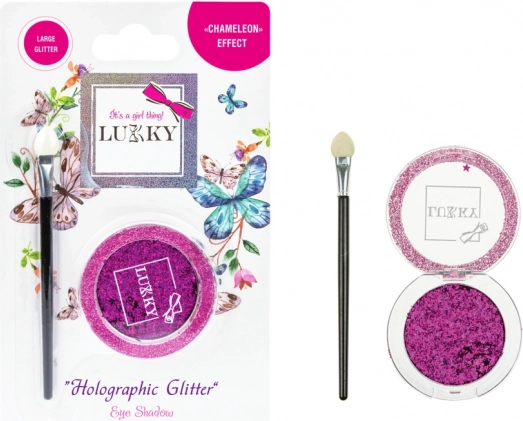 Geef je ogen een verbluffende look met gel oogschaduw met holografische glitter van het merk LUKKY. Deze innovatieve cosmetica biedt een geweldige glinsterende finish die van kleur verandert afhankelijk van de lichtinval voor een uniek "chameleon effect". De oogschaduw is geschikt voor kinderen vanaf 3 jaar, waardoor jonge opkomende make-upartiesten veilig kunnen experimenteren met make-up.