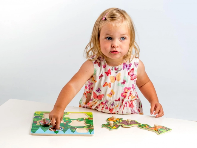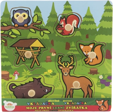 Ontdek de magie van de eerste puzzel voor de allerkleinsten: een houten inlegpuzzel met knopjes en zes bosdieren. Stimuleert de fijne motoriek, oog-handcoördinatie en vormherkenning. De stevige houten plaat met randjes helpt de stukjes altijd makkelijk op hun plek te vallen.