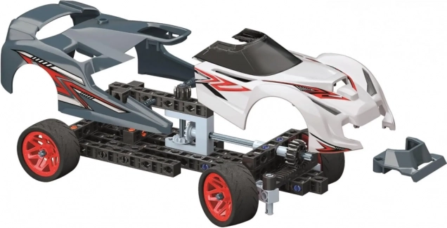 De set bevat alles wat je nodig hebt voor de montage, inclusief een 3D-beeldhandleiding en een ondersteunende app met drie montagestadia. Dankzij het herhaaldelijk kunnen opbouwen kunnen kinderen eigen ideeën uitproberen, oplossingen testen en het ontwerp verbeteren – inclusief stickers voor de afwerking van de auto.