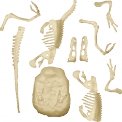 De ArcheoFun archeologieset biedt kinderen een authentieke opgraafervaring. Met een hamertje en beiteltje ontdek je stap voor stap het fossiel dat in een blok aarde verborgen zit en zet je van de gevonden onderdelen een realistisch velociraptorskelet in elkaar. Dankzij het fluorescerende materiaal absorbeert het skelet daglicht en licht het op in het donker, wat het tot een geweldige decoratie voor de kinderkamer maakt.
