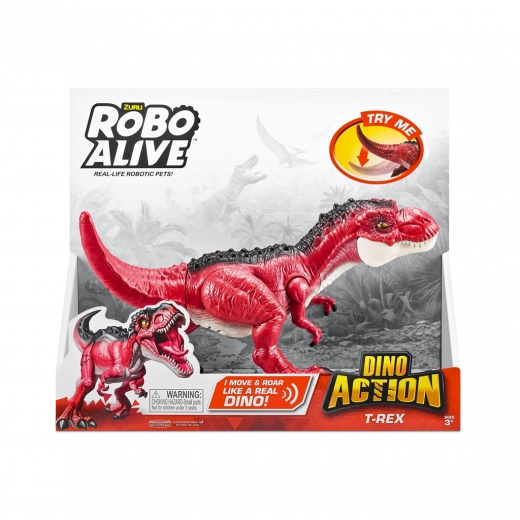 Robo Alive Dino Action T-Rex is de wildste predator! Deze dino komt tot leven met een realistisch ontwerp, dierlijk gebrul en levensechte bewegingen.