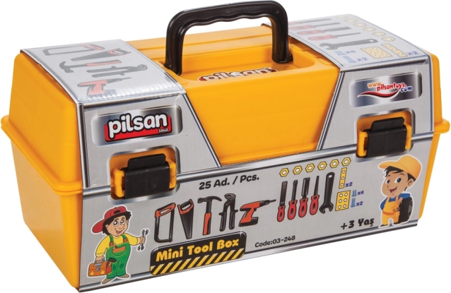 Ontdek een leuke en veilige manier van leren met de Pilsan gereedschapsset (34 stuks). Ideaal voor rollenspellen waarin kinderen het werk van een kleine meester uitproberen. Dankzij de meegeleverde montageplaat zijn de activiteiten realistischer en oefenen kinderen schroeven, grijpen en de oog-handcoördinatie.