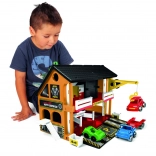 De Play House autogarage biedt een realistische uitstraling van een tweelaagse werkplaats met functionele componenten die creatief spel aanmoedigen.