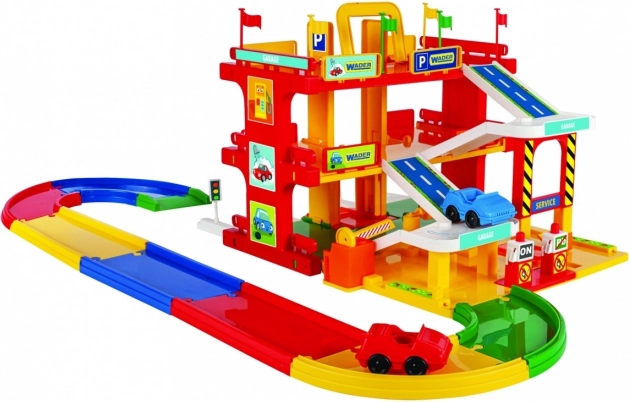 Drie verdiepingen tellende garage met lift, wasstraat en tankstation voor een complete speelervaring.