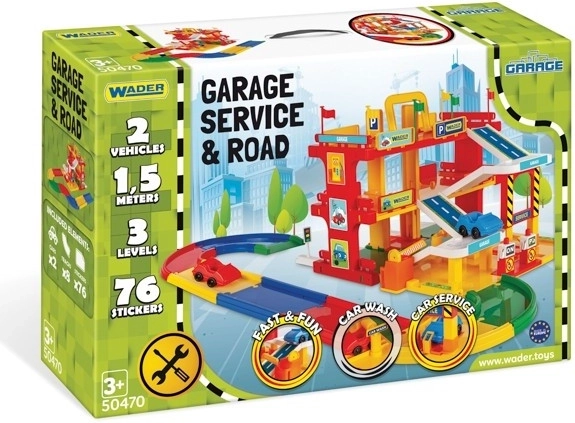 Garage Service uit de Garage serie is een modern ontworpen speelgoed dat een autolift, wasstraat, tankstation, autowerkplaats en drie gedecoreerde niveaus bevat. Het spel stimuleert vooral creatief denken, motorische en manuele vaardigheden van uw kinderen.