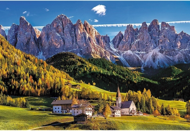 Reis naar het schilderachtige Val di Funes in het hart van de Dolomieten en leg een adembenemend panorama met levendige kleuren en dramatische bergtoppen. Dankzij de precieze uitsnijdingen en stevige stukjes blijft het beeld perfect samen en is het puzzelen vloeiend en prettig.