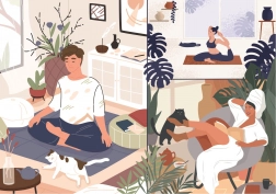 - 1000 stukjes met subtiele illustraties van ontspanning, yoga en katten