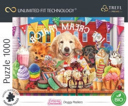 Trefl Unlimited Fit Technology (UFT) brengt een nieuwe dimensie in puzzelen: afzonderlijke motieven uit de serie kunnen vrij met elkaar worden gekoppeld om grote puzzelcollages zonder beperkingen te creëren. Het motief van schattige hondjes voor de banketbakkerij zal liefhebbers van dieren én van hoogwaardig design bekoren.