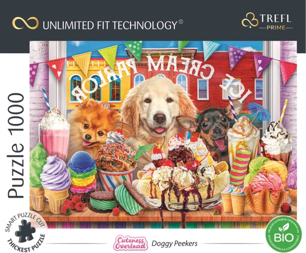 Ontdek puzzels met onbeperkte mogelijkheden met Trefl UFT Cuteness Overload: hondjes voor de banketbakkerij met 1000 stukjes. Dankzij de Unlimited Fit Technology kun je meerdere motieven met elkaar verbinden tot unieke collages die je helemaal naar wens samenstelt. Uitstekende kwaliteit van stevig blauw karton, unieke vormen van de stukjes en een stabiele verbinding maken het eenvoudig om het voltooide beeld te verplaatsen. Milieuvriendelijke verpakking zonder buitenfolie en met een composteerbaar zakje zal iedereen aanspreken die om de natuur geeft.