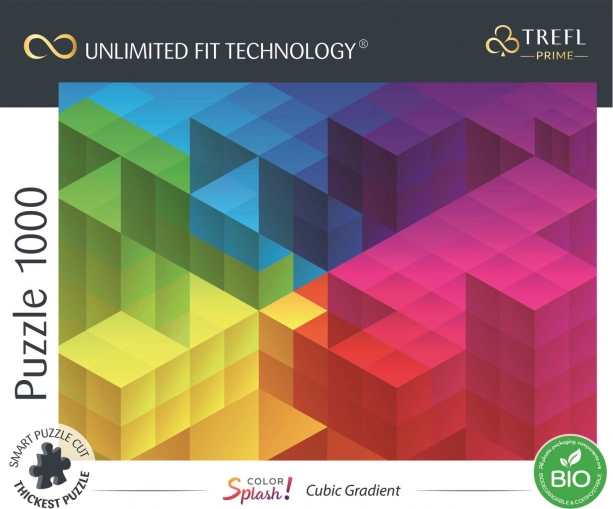 Ontdek eindeloos puzzelplezier met de TREFL UFT Color Splash-puzzel met een blokjesgradient, bestaande uit 1000 stukjes. Dankzij de Unlimited Fit Technology kun je afzonderlijke motieven vrij met elkaar verbinden tot grotere collages. De puzzel is gemaakt van stevig blauw karton, elk stukje heeft een unieke vorm en het gelegde beeld kan gemakkelijk worden verplaatst zonder uit elkaar te vallen. De ecologische bioverpakking zonder plastic folie is ideaal voor iedereen die aan de planeet denkt.