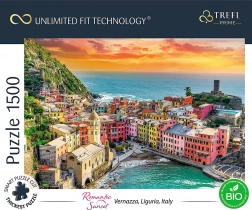 Dom pel je onder in de sfeer van CINQUE TERRE met het gedetailleerde motief van Vernazza, badend in het warme licht van de ondergaande zon. De TREFL UFT‑puzzel biedt niet alleen een prachtig beeld, maar ook doordachte afwerking voor comfortabel puzzelen. Dankzij de speciale stanst echnologie kunnen motieven uit de UFT‑serie onderling worden gekoppeld, zodat je grootformaat collages kunt creëren precies naar jouw wens.