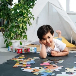 Op de achterkant van elke puzzel staat een kleurplaat en een spel met tekenelementen, een uitdaging voor kleine slimme koppies. Biedt educatief plezier waarmee kinderen vormen en kleuren kunnen leren.