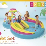 Het centrum is gemaakt van getest massief vinyl, dat duurzaam en veilig is. Het heeft extra vulling voor de veiligheid van kinderen en een aflaatklep in de bodem voor eenvoudig afvoeren van water. De set bevat ook een reparatiepleister voor onverwachte situaties.
