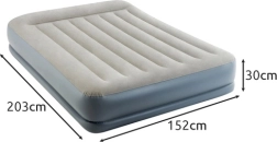 Het tweepersoons opblaasbare luchtbed van INTEX met Dura-Beam Fiber-Tech-technologie biedt een stevige ondersteuning, een comfortabel velours oppervlak en snel op- en leegpompen dankzij de ingebouwde elektrische pomp in ongeveer 3 minuten. Ideaal als comfortabel logeerbed, voor thuis en op de camping, met een draagvermogen tot 272 kg en eenvoudig op te bergen.