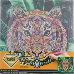 Ontdek ontspanning en creativiteit met de complete set voor diamond painting met tijgermotief. Het canvas is al opgespannen op een houten frame van 30 × 30 cm en in de verpakking vind je alles wat je nodig hebt: een applicatiepen, een bakje, wax en een set steentjes voor eenvoudig en precies creëren.