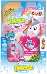 Verander het bad in een vrolijk spel. De INKEE bruisbal kleurt het water, ruikt heerlijk naar zoete popcorn en onthult na het bruisen een klein eenhoornfiguurtje. Ideaal als klein cadeautje, beloning of leuk extraatje voor de badroutine van kinderen.