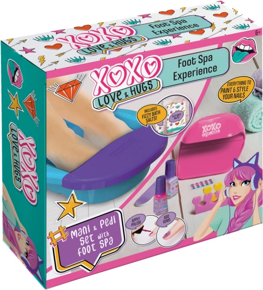 Verwen jezelf met een wellnessmoment voor handen en voeten met de XOXO-set. Bevat alles voor mooie, verzorgde nagels: voetenbad, UV/LED-uithardlamp, nagellakken, steentjes, vijl, foam teenenspreiders en bruisende badzouten voor een ontspannend bad.