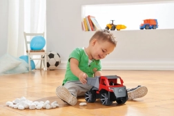Dankzij de stevige en duurzame afwerking van veilig kunststof kan hij intensief kinderspel aan, thuis, in de tuin en in de zandbak. De kiepwagen wordt geleverd in een kleurrijke geschenkdoos met venster en is daarmee een geweldig cadeau-idee.