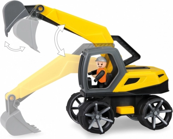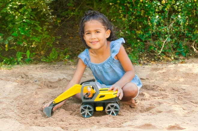 Robuuste kinder-graafmachine uit de serie TRUXX 2 voor speelplezier binnen en buiten. Biedt een draaibare bovenbouw met vergrendeling, een volledig functionele arm met schep bedienbaar met een handgreep en een chauffeursfiguurtje in een gemakkelijk toegankelijke cabine. Gemaakt van ongevaarlijk kunststof in de Tsjechische Republiek.