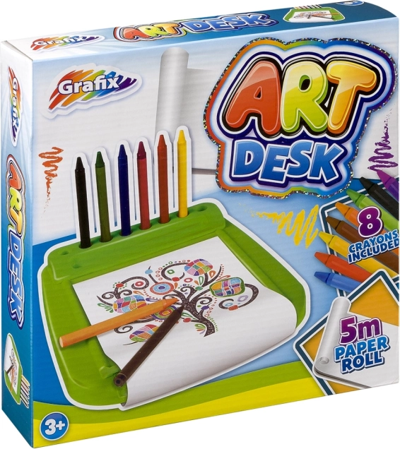De tekentafel van het merk Grafix brengt plezier en creativiteit in elke kinderkamer. Deze complete creatieve set ondersteunt de ontwikkeling van motorische vaardigheden en de creativiteit van kleine kunstenaars. Kinderen kunnen gemakkelijk tekenen, papier van de rol afscheuren en doorgaan met hun activiteit. De set is praktisch en gemakkelijk mee te nemen, wat hem ideaal maakt voor gebruik thuis en onderweg.