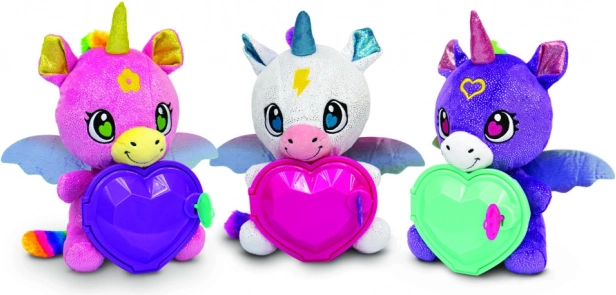 Wat zit er binnenin: een armband met verrassing, een ring met verrassing en stickers. Kinderen kunnen hun kleine schatten bewaren in het hartje van de eenhoorn en eigen geheime verhaaltjes bedenken. De pluche is zacht, veilig en geschikt voor dagelijks knuffelen en creatief spelen.