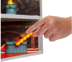 De kooi met openklapbare bodem en platforms boven de “lava” zorgen voor dramatische gevechten. Laat Bowser in de afgrond vallen en beleef momenten uit SUPER MARIO opnieuw.